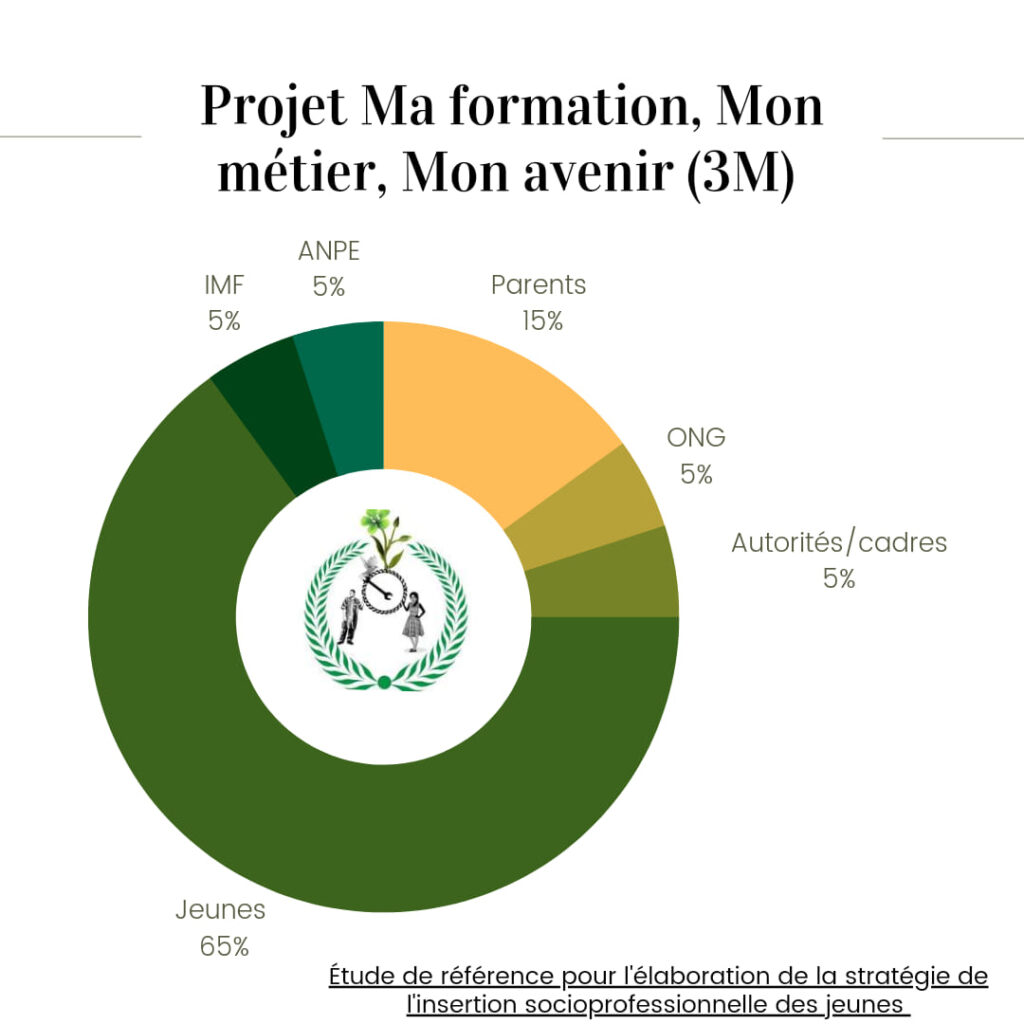 Nous croyons fermement au potentiel entrepreneurial des jeunes et nous nous engageons à fournir les ressources et le soutien nécessaires pour transformer vos idées en réalité. Avec notre projet dynamique “Ma formation, Mon métier, Mon avenir (3M)”, nous offrons une plateforme d’apprentissage et de développement conçue pour vous aider à développer vos compétences entrepreneuriales, à explorer de nouvelles idées d’entreprise et à atteindre vos objectifs professionnels.